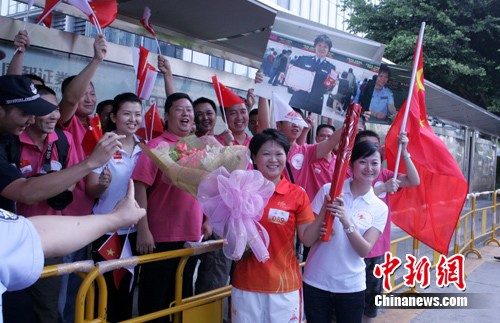 和黃利榮一樣處于興奮之中的羅湖邊檢站的同事們,早在兩天前就前去傳遞路線踩點(diǎn)。18日當(dāng)天幾十名民警自發(fā)前往市民中心,拉著橫幅、高舉國(guó)旗,在火炬?zhèn)鬟f沿線為黃利榮吶喊助威。黃利榮表示,平安亞運(yùn)任重道遠(yuǎn),她將以火炬?zhèn)鬟f為動(dòng)力,和她的同事們一起,在邊檢崗位上竭誠(chéng)為出入境旅客服務(wù),為實(shí)現(xiàn)‘平安亞運(yùn)’的目標(biāo)不懈努力,做傳播亞運(yùn)精神的文明使者。完