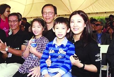 為了配合活動(dòng)的需要,伏明霞與老公一同穿上了印有活動(dòng)標(biāo)記的T恤衫,顯得精神干練,而兒女的著裝則要休閑一些,看起來(lái)一家四口其樂融融,既是為活動(dòng)添彩,也是同享天倫之樂。