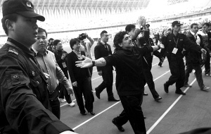 終場前5分鐘,主席臺上的馬拉多納終于起身,現(xiàn)場主持人興奮得馬上宣布,“馬拉多納因?yàn)橛型葌,特地半小時(shí)前打了封閉,現(xiàn)在可以下場踢球了!币粫r(shí)間,全場又是一陣歡呼聲。不過,此時(shí)全場最搞笑的一幕出現(xiàn)了,腳穿皮鞋的馬拉多納在贊助商陪同下走到場邊,然后,對著場內(nèi)大呼小叫了一番,前后不過三四分鐘時(shí)間,主裁就吹響全場結(jié)束哨聲?磁_上,至少花200元錢買票入場的球迷這才發(fā)覺上當(dāng),終于爆發(fā)出陣陣吼聲:“騙子,退票!退票!”此時(shí),老馬頭也不抬,一溜煙跑回了休息室。記者 徐東海