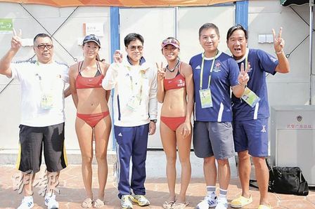 昨日在沙排場地首戰(zhàn)的香港組合謝穎紅及江卓儀,兩人旗開得戰(zhàn)勝韓國組合,到場觀看比賽的香港代表團(tuán)副團(tuán)長霍啟剛表示已觀看武術(shù)、體操等賽事,提到港隊(duì)前2天獲2金,他開心地說:“我較喜歡刺激的比賽,排球、羽毛球、乒乓球都不錯(cuò),不過有時(shí)比賽太刺激,中途要走到后臺不敢看下去呢。”霍啟剛將留在廣州觀戰(zhàn)整個(gè)亞運(yùn),他又表示沙排氣氛熱烈,假如香港主辦亞運(yùn)必會盡力爭取舉辦這項(xiàng)“沙灘嘉年華”。