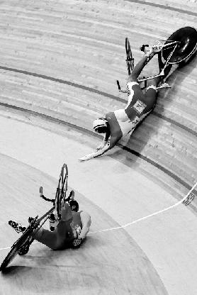 男子記分賽也出現(xiàn)類似情況。最后一個彎道,韓國選手赪浩成與烏茲別克選手沙耶霍夫發(fā)生激烈碰撞,后者被自行車碾過。
