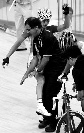 張磊此前已將團體競速賽和男子爭先賽兩項冠軍收入囊中。昨天,中國隊派出張磊的孿生弟弟張淼助其爭奪三冠王。在最后沖刺彎道處,處于領(lǐng)先的張磊被突然沖出的馬來西亞選手吳安楠擠倒。緊隨其后的伊朗車手穆罕默德無法躲閃,張磊被重重撞倒在地,腿部被自行車碾過,皮破血流。