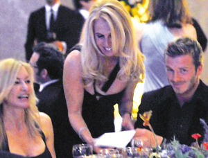 在上周米蘭當?shù)嘏e辦的慈善晚宴上,貝克漢姆是作為特邀嘉賓出席的。就在小貝落座后不久,幾位當?shù)厣缃幻戮颓案昂罄^地想在這位英國萬人迷身上探究個人魅力,而小貝除了保持風度、應接不暇地搭訕之外根本沒有其他選擇。結果,相對于其他女人,當?shù)孛录硬见惏@剂松巷L,因為在狗仔隊的鏡頭下,貝克漢姆儼然擺出的是一副消受艷福的嘴臉。緊接著,連AC米蘭首席執(zhí)行官加利亞尼的老婆瑪麗卡也上前勾肩搭背地要同貝克漢姆親熱一番,接近小貝簡直成了出席那次慈善晚宴的女人們唯一的目的。