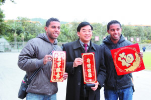 23日晚7點多,經(jīng)過3天舟車勞頓的迪亞戈兄弟悄然抵穗,正式開始中國的淘金之旅。昨天,尚未調(diào)整過時差的迪亞戈兄弟便早早地來到俱樂部訓(xùn)練場,和剛剛從三水返穗的廣藥大部隊匯合。長相、身高、發(fā)型、笑容幾乎完全一樣的巴西twins甫一亮相,便成為了訓(xùn)練場上的絕對焦點。正在進(jìn)行折返跑的廣藥球員齊刷刷地將目光掃向了這對雙胞胎,隨后便是不約而同地驚訝和詫異,“太像了”、“到底哪個才是迪亞戈啊?”