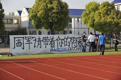 據(jù)現(xiàn)場目擊記者透露,該橫幅上的周字是經(jīng)過球迷改造的,周字中間的口部當(dāng)中出現(xiàn)了兩個代表美元的符號。據(jù)記者了解,之所以球迷將周軍的周字中間部分做成美元標(biāo)識,是因為有坊間傳聞申花的五千萬水貨外援讓其腰包鼓鼓。而橫幅還出現(xiàn)了巴爾克斯的名字,巴爾克斯在申花客場對新加波一戰(zhàn)中雖然攻進(jìn)一球,但是錯失多次必進(jìn)球機會,被認(rèn)為是申花亞冠出局的最大罪人之一,而他恰好是周軍找來的外援。