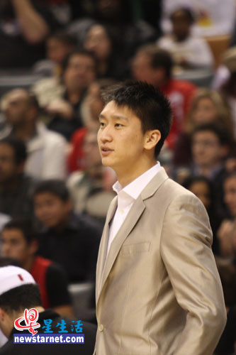 身著西裝的孫悅更多的時間只是靜靜地坐在場邊觀戰(zhàn)。只是在比賽暫停期間,他才起身與隊員一起傾聽主教練對比賽的部署。在中國孫悅是一個很有實力的球員,但在NBA卻不得不從板凳上站起。