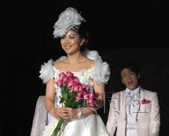 中新網(wǎng)2月18日電 據(jù)共同社報道,北京奧運羽毛球女雙“潮田/小!苯M合中的一員、日本羽毛球名將潮田玲子17日在東京舉行的著名設計師桂由美婚紗秀上擔任模特,首次走上了T型臺。