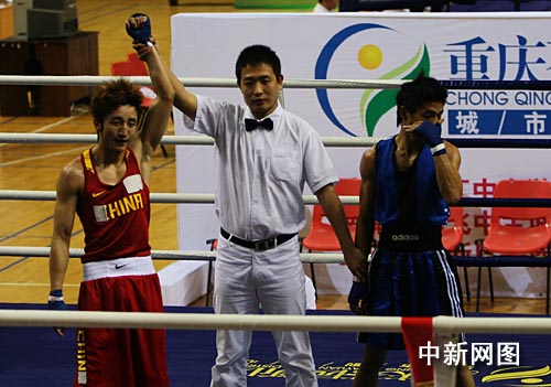 中新網(wǎng)重慶4月24日電 (孟幻)在重慶開賽的第十一屆全國運動會拳擊第一次預賽暨2009年全國拳擊錦標賽賽程今天進入第3天。當晚,北京奧運冠軍鄒市明在48公斤級1/8決賽中首次登場,并贏得奧運后首秀勝利。他在賽后表示,以如此大比分獲勝很意外。