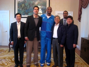 科比感謝張總領(lǐng)事邀請他來官邸作客,并愉快地憶及去年8月赴京參加北京奧運(yùn)會的情景?票缺硎,親身參加北京奧運(yùn)會是他巨大的榮耀。在華期間,他初步領(lǐng)略到了絢麗多彩的中國文化和快速發(fā)展的中國社會,充分感受到了中國人民的友好情誼。他熱愛中國,希望早日重訪中國,進(jìn)一步加深對中國的了解。同時,愿發(fā)揮自身影響力,為促進(jìn)美中兩國青年間的相互溝通與交流,特別是為兩國弱勢兒童的福祉做些實事。