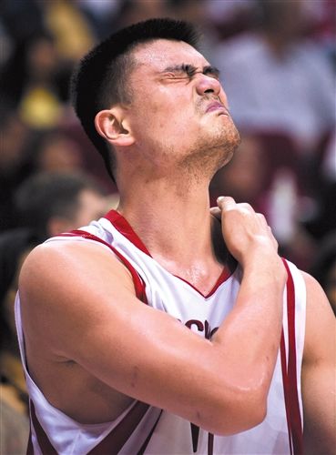 2007年,因?yàn)榧鐐,姚明缺席了男籃四國賽。2008年因?yàn)楣钦酆图鐐γ魅毕酥袊谢@在奧運(yùn)會之前的絕大部分熱身賽。2009年,肩膀再度出現(xiàn)問題,姚明會不會缺席亞錦賽?