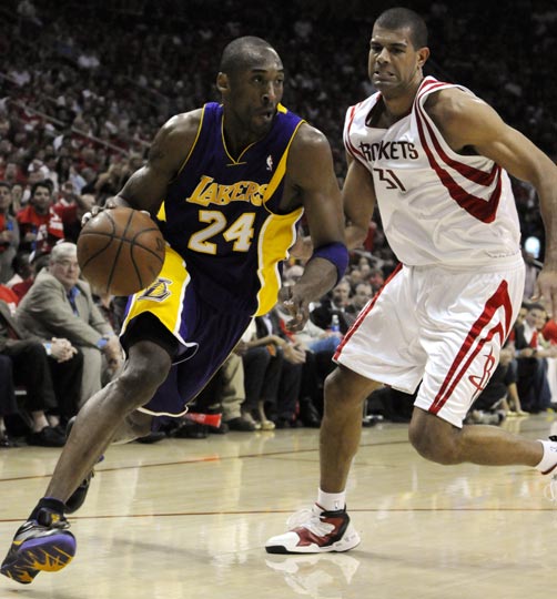 第二輪火箭面對的是西部頭號種子湖人,但休城球員們首戰(zhàn)就給了湖人一個(gè)下馬威:第四節(jié)火箭仍然緊緊地咬住比分,但距離末節(jié)還剩4分半時(shí),科比在突破時(shí)左膝蓋頂?shù)搅艘γ鞯挠蚁ドw,撞得巨人倒在地上痛苦地打滾。但堅(jiān)強(qiáng)的姚明在被隊(duì)醫(yī)架出場之后仍咬牙重返球場,并在上場后馬上投中關(guān)鍵一球,87-81!火箭再次壓住了陣腳。距離終場還剩兩分鐘時(shí),火箭91-81領(lǐng)先10分。關(guān)鍵時(shí)刻,姚明接小布傳球施展夢幻舞步造費(fèi)舍爾犯規(guī),再次成為火箭的英雄。最終火箭100-92取勝湖人,季后賽首場拿下一場酣暢淋漓的勝利。