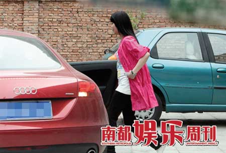 終于楊威有點不耐煩了,站起身來走進了那排平房。記者發(fā)現(xiàn)在平房里有一家小型廣告公司,楊云好像在與該公司的工作人員用電腦制作一些材料。大約又過了20分鐘,楊威先出來啟動汽車,楊云拿著一張光碟和一些文件跟著快步走了出來。記者看到楊云穿著一件寬大的白色T恤,腹部微微隆起,孕相明顯,估計已經(jīng)有三四個月的身孕了。別看有孕在身,但楊云膚色紅潤,步履輕快,不愧是運動員出身,20分鐘后楊威和楊云返回了公寓。