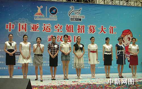 中新網(wǎng)武漢7月10日電 (徐金波 孫紅良 沈蕾)廣州亞運(yùn)會(huì)組委會(huì)官方合作伙伴中國南方航空公司組織舉辦的“中國亞運(yùn)空姐招募大匯”全國第一站,10日在武漢展開海選活動(dòng),當(dāng)天8000多名佳麗從武漢三鎮(zhèn)趕來,競選該選區(qū)的80個(gè)亞運(yùn)空姐名額。