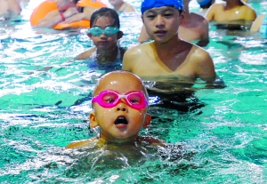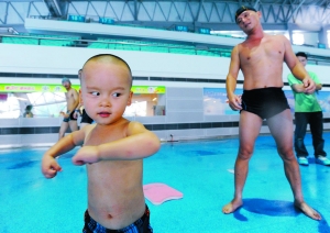 不到一分鐘,小劉暢就游到了泳池的另一頭,劉先生說,泳池的寬度是20米,劉暢一口氣就能游完。到達(dá)終點后,劉先生把他抱起,讓他歇口氣,接著又讓他游回了起點。上岸后的小劉暢興奮得要命,一點看不出游完40米的疲憊,嘻嘻哈哈地與其他小朋友打鬧。