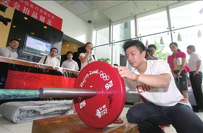 民間奧運(yùn)藏品拍賣爭(zhēng)奪激烈張湘祥奪冠杠鈴拍得7.2萬元