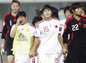 昨晚,2009年U19女足亞青賽三、四名決賽在武漢進行,而這場比賽事關(guān)中國和朝鮮女足青年隊能否進入明年世青賽賽場。經(jīng)過90分鐘激戰(zhàn),中國女青0:1不敵朝鮮隊,列亞青賽第四名,無緣世青賽。雖然輸給朝鮮女青屬意料之中,但這場失敗對于中國女足來說,卻是中國女隊首次未獲得世青賽門票,創(chuàng)下了歷史最差戰(zhàn)績。