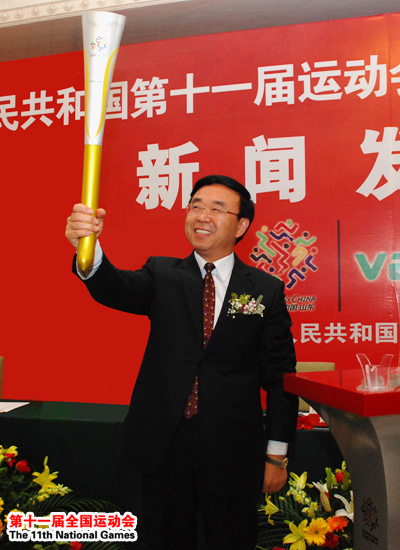 黃勝在致辭中說,火炬?zhèn)鬟f是全運(yùn)會(huì)的開場(chǎng)鑼鼓,全社會(huì)高度關(guān)注。十一運(yùn)會(huì)火炬“如意”展示了我國(guó)傳統(tǒng)藝術(shù)魅力和最新科技水平,寄托著全國(guó)人民對(duì)新中國(guó)成立60周年和十一運(yùn)會(huì)的美好祝福。通過火炬?zhèn)鬟f活動(dòng),“如意”之光必將照亮神州大地,“祝福祖國(guó)、共享全運(yùn)”的旋律必將響徹四面八方,為十一運(yùn)會(huì)隆重開場(chǎng)奏響序曲、拉開大幕。