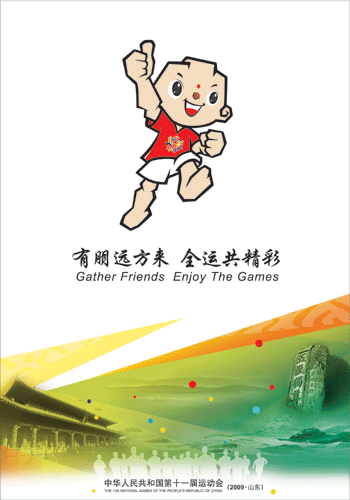 會徽形象宣傳畫下方畫面中表現(xiàn)了主會場的代表性建筑——“東荷西柳”的整體造型,并與大海的形態(tài)融為一體,通透疊加的顏色使用、最前方奔跑的人群,體現(xiàn)出此次運(yùn)動(dòng)會“和諧中國,全民全運(yùn)”的主題。吉祥物形象宣傳畫的下方是孔廟和泰山的形象,與上方的泰山童子一起,準(zhǔn)確傳達(dá)出山東的地域特色,同時(shí)還體現(xiàn)了山東好客、熱情、誠邀四方嘉賓的氛圍。主宣傳畫著力表現(xiàn)會徽與吉祥物,其形式與十一運(yùn)會整體視覺形象相一致。