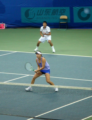 今天一襲粉衣亮相的鄭潔十分搶眼。首盤(pán)比賽一開(kāi)始,鄭潔就表現(xiàn)非常不錯(cuò)的狀態(tài),在連下四分拿下發(fā)球局后,她又在手握兩個(gè)破發(fā)點(diǎn)的情況下輕松破發(fā),三比一領(lǐng)先。第五局,兩人多次打出平分,最終鄭潔憑借著把握關(guān)建球的能力,再次破發(fā)。鄭潔在第六局保發(fā)成功,在第七局中鄭潔拿到三個(gè)破發(fā)點(diǎn)輕松破發(fā),從而以六比一贏下首盤(pán)。