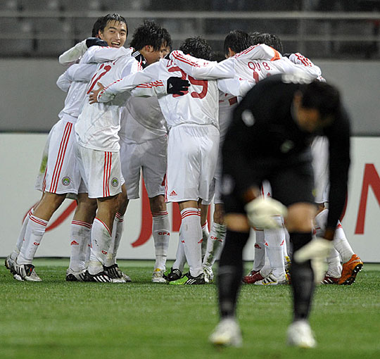 法新社驚嘆稱,“中國(guó)的男人們只用了四分鐘就攻入了第一例進(jìn)球!鼻ㄓ衣吠黄坪髾M傳,中場(chǎng)球員于海插上頭球攻門得手。第27分鐘,楊昊在得球后妙傳郜林,后者擴(kuò)大了比分。鄧卓翔在第60分鐘也接到了曲波的助攻,并攻破了韓國(guó)隊(duì)的大門。2005年?yáng)|亞四強(qiáng)賽的冠軍中國(guó)隊(duì)防守也很出色,韓國(guó)隊(duì)甚至難以形成有效的傳中。