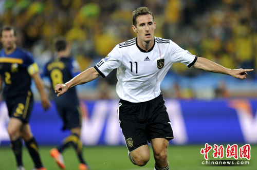 中新網(wǎng)6月14日電 在今天凌晨進行的一場南非世界杯小組賽中,德國隊迎來了首個對手澳大利亞,經(jīng)過90分鐘激戰(zhàn),憑借波多爾斯基、克洛澤穆勒和卡考的進球,在以4-0狂勝對手的同時,也創(chuàng)下了迄今為止南非世界杯的最大比分。