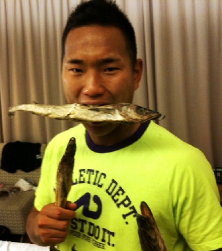 中新網(wǎng)6月19日電 在和巴西隊(duì)的比賽中表現(xiàn)出色的朝鮮國家隊(duì)隊(duì)員鄭大世在博客中上傳了“明太魚照片”,引起了人們的熱議。韓國《中央日報(bào)》報(bào)道稱,他在博客中公開了自己咬著明太魚的滑稽照片。他說:“明太魚是朝鮮國家隊(duì)隊(duì)員們喜歡的零食,我也很喜歡!