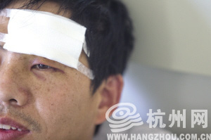 這起事件,最初是一起出租車司機(jī)與乘客之間的駕乘糾紛,拳頭最先是打在梁師傅身上。梁師傅名梁珍極,35歲,甘肅人,2003年開(kāi)始在杭州開(kāi)出租車,1月17日下午3點(diǎn)左右,梁師傅在文三路載了一男一女兩名乘客,“兩個(gè)人都很年輕,個(gè)子都很高,蠻瘦的,年紀(jì)都在20歲出頭。男的個(gè)頭有1米9吧,穿了件灰色的運(yùn)動(dòng)服。女的穿了件黑色的衣服,他們上車后,讓我去西城廣場(chǎng)。我就往前開(kāi)。開(kāi)到西城廣場(chǎng)那邊一條小路,男的讓我右轉(zhuǎn)彎,那條路上有個(gè)禁止右轉(zhuǎn)彎的標(biāo)志,我說(shuō)這里不能開(kāi)的,那個(gè)男的嘴上就罵罵咧咧了,聽(tīng)他們的口音像是東北的。后來(lái),那個(gè)男的突然發(fā)怒了,下了車,拉開(kāi)我的車門,把我拖出來(lái)就打,邊上很多人看到了,幫我報(bào)警,那個(gè)女的拉著那個(gè)男的,說(shuō)不要打了,就打算走。我說(shuō)你們不能就這么走了。這時(shí)候那個(gè)女的就在我的手里塞了100塊錢,讓我去醫(yī)院。我說(shuō)這點(diǎn)錢哪夠上醫(yī)院的?”