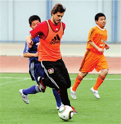 由于球員傷病或去國家隊備戰(zhàn)世界杯,勒沃庫森隊中阿德勒、克羅斯和基斯林等無法來華,不過前德國國腳M·弗里德里希以及辛基維奇、卡斯特羅和黑爾默斯等明星球員均隨隊前來,全隊最大牌的還是德國前國家隊主教練沃勒爾。昨天下午,弗雷德里希等球員來到回民中學,在球場上對學校小球員們進行了技術(shù)指導(dǎo)。