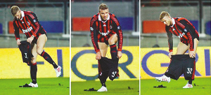不知是不是太過(guò)賣力,動(dòng)作幅度太大,貝克漢姆的球褲在比賽中竟然撕裂了。向裁判申請(qǐng)后,米蘭隊(duì)工作人員將新球褲遞了上來(lái),場(chǎng)上的萬(wàn)人迷直接站在草地上,一把扯下身上的球褲,扔在地上,再將新球褲穿了上去。整個(gè)動(dòng)作連貫流暢,沒(méi)有一絲猶豫,不過(guò)在他彎腰的時(shí)候,全場(chǎng)觀眾仍然看到了他的黑色緊身內(nèi)褲下屁股的線條,這遠(yuǎn)遠(yuǎn)比貝克漢姆的腳法更容易讓女球迷激動(dòng)。