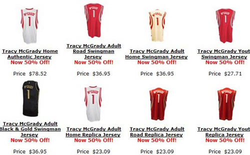 我們不得不注意一個事實:麥克·詹姆斯的球衣,在交易前兩天以半價出售;“棒子”威爾斯和阿爾斯通的球衣在交易同一天被半價出售……打開火箭官方商店的網(wǎng)站,我們可以清楚的看到,麥迪系列的球衣已經(jīng)被擺上了大甩賣貨架,一律五折出售。