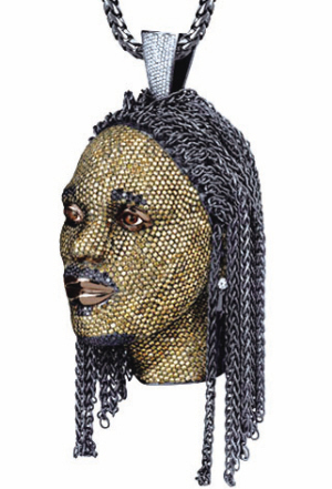 這是一個用純金和鉆石堆砌出來的奢侈品,完全按照丹尼爾斯的真人輪廓打造。美國媒體披露了這個頭像的制作過程。制作人員先把丹尼爾斯的素描輸入電腦,然后進(jìn)行比例分析,之后開始制作。先用模板澆鑄出純金的頭像,然后把鉆石鑲嵌上去。