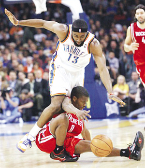 在剛剛加盟火箭隊(duì)的06-07賽季,“暴力扣將”斯威夫特有一天在家里休息,飛來一只蒼蠅飛到他的眼睛上,他用粗大的手指去揉眼睛,結(jié)果給揉出了結(jié)膜炎被迫缺席了9場(chǎng)比賽,據(jù)說用手指揉眼睛發(fā)生結(jié)膜炎的概率是百萬分之一。