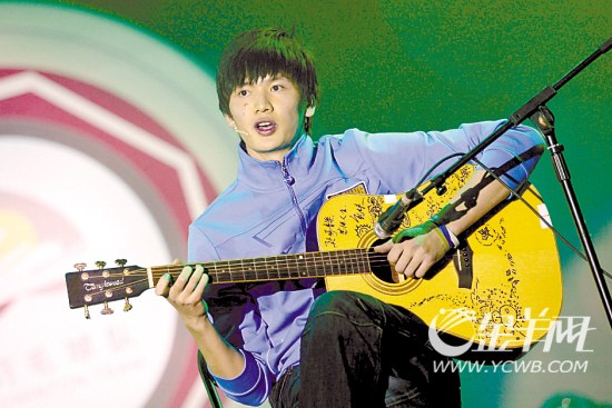 相比那些那富有節(jié)奏的律動(dòng),鮑春來(lái)選擇了安靜的自彈自唱。對(duì)木吉他彈奏有一定修為的小鮑一改去年的快樂(lè)形象,偕同師弟文凱登臺(tái),情深款款地將《春天花會(huì)開(kāi)》演繹得完美無(wú)瑕,引來(lái)臺(tái)下粉絲們的尖叫和掌聲。
