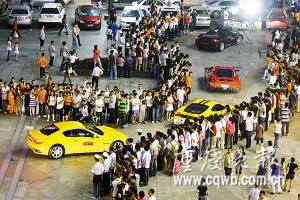 繼前兩天分別在成南高速和成灌高速爆出飆車嫌疑之后,在川渝兩地名噪一時的法拉利豪車隊昨天(7日)上午在成都金港賽道集體亮相。賽場被車隊全場全天包斷,記者以及追捧豪車的眾多成都車迷悉數(shù)被拒之門外,連最外側(cè)的看臺也被清場。
