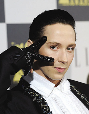 美國當(dāng)?shù)貢r間2010年3月6日,有“冰上水仙男”之稱的美國花滑選手約翰尼·威爾給了人們一個驚喜,出現(xiàn)在了洛杉磯的某電影節(jié)上,當(dāng)天威爾大擺pose,魅力四射。