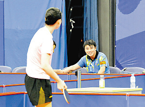 過了一會(huì)兒,王皓由隊(duì)醫(yī)進(jìn)行按摩恢復(fù),但他的眼睛一直盯著彭陸洋。彭陸洋不時(shí)走到場邊撿球,每次只要走到與王皓相近的場地角落,王皓基本上都要跟她說上幾句:有時(shí)是開玩笑,王皓說得眉開眼笑,彭陸洋的臉上比較平靜,回過頭來繼續(xù)打球;有時(shí)候是王皓給彭陸洋提一些建議,彭陸洋點(diǎn)點(diǎn)頭。趁著彭陸洋場邊休息的時(shí)候,王皓走上前來,對(duì)彭陸洋交代了幾句。
