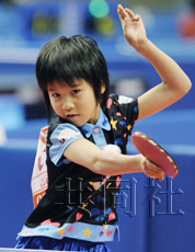 中新網(wǎng)1月15日電 據(jù)共同社報道,14日在東京體育館舉行的全日本乒乓球錦標賽中,首次參加青少年組比賽的山梨縣中央市田富北小學二年級學生平野美宇(8歲)在女子單打比賽中獲得一勝,打破了福原愛在小學四年級時創(chuàng)下的參賽選手及獲勝選手最低年齡記錄,平野笑著說:“感到非常高興。”