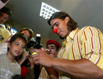 一向熱心公益的納達(dá)爾,很喜歡與孩子們玩樂(lè)。四年前,納達(dá)爾就在馬洛卡杜雷塔醫(yī)院扮作小丑安慰受到病痛折磨的孩子們。西班牙RTVE電視臺(tái)稱(chēng),這是孩子們令人難忘的經(jīng)歷,“從他們驚訝的面部表情當(dāng)中就可以看出,對(duì)于世界第一的網(wǎng)球選手能親自來(lái)給他們講童話,是多么難以置信!逼鋵(shí),一向喜歡看動(dòng)畫(huà)、玩PS2游戲的納達(dá)爾在場(chǎng)外就是個(gè)長(zhǎng)不大的孩子。這個(gè)漫畫(huà)《七龍珠》的忠實(shí)擁躉,出外比賽旅行時(shí)也總帶著《七龍珠》的DVD,所以講起童話來(lái)也頭頭是道!捌鋵(shí)我不大會(huì)唱歌,相反為孩子們將故事是件不錯(cuò)的工作!奔{達(dá)爾坦言。
