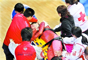 綜合《京華時(shí)報(bào)》、《今日早報(bào)》等報(bào)道,4日的全運(yùn)會(huì)短道速滑賽場(chǎng)上出現(xiàn)了驚險(xiǎn)一幕;在女子500米預(yù)賽中,新疆小將孔雪的脖子被冰刀劃傷,出現(xiàn)了一道6厘米長(zhǎng)的傷口,一時(shí)血如泉涌。孔雪隨后被送往醫(yī)院縫合了14針。昨日,孔雪帶傷上陣,現(xiàn)場(chǎng)掌聲、加油聲此起彼伏。