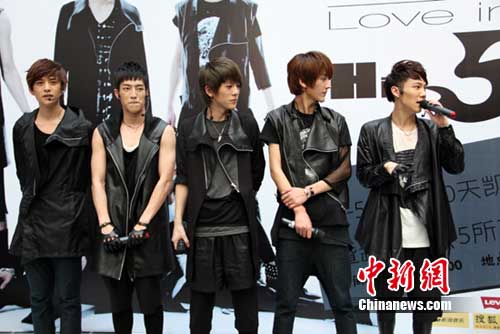 中新網(wǎng)7月9日電 剛從臺灣發(fā)展100天歸來的內(nèi)地人氣偶像團(tuán)體HIT-5昨日在北京舉行了首張專輯《5所不愛》的發(fā)布會,國際知名品牌levis在現(xiàn)場透露,HIT-5將在不久后代言這個(gè)品牌,取代陳冠希。