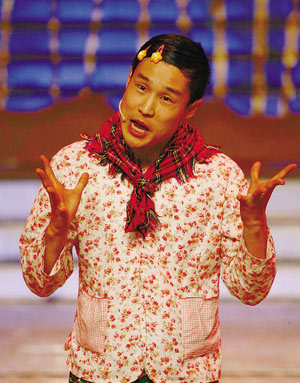 這期《新聞周刊》的文章說(shuō),外表上看來(lái),小沈陽(yáng)很謙虛禮貌,很難想像他畫(huà)著大濃妝、帶著發(fā)卡、穿著禮服在臺(tái)上喝啤酒、講下流笑話(huà)、活蹦亂跳、大喊大叫的樣子。最近一次演出中,他穿著帝王式的絲質(zhì)長(zhǎng)袍,卻背了一個(gè)粉紅色的Hello Kitty的書(shū)包。