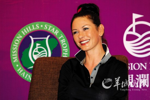 在昨日出席比賽的眾多明星中,好萊塢女星凱瑟琳·澤塔·瓊斯無疑是最受媒體關(guān)注的一個(gè)。瓊斯與丈夫邁克·道格拉斯都是高爾夫球達(dá)人,對(duì)于兩人的球技較量,凱瑟琳謙虛地說:“丈夫比我打得好多了,不過我打球的姿勢(shì)比他好看!”