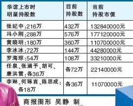 自從去年九月底華誼兄弟股票上市以來,張紀(jì)中、馮小剛、黃曉明等眾多華誼明星的頭上又多了一個新的稱謂:“華誼股東”。一夜之間,這些明星們的身家暴增,坐擁千萬財富。