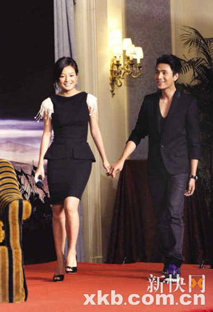 發(fā)布會一開始,牽手出場的趙薇和陳坤就很默契地“控訴”導演,一邊帶大家到各處去吃好吃的東西,一邊勒令兩個人減肥,因為從軍的人都要比較瘦。之后,趙薇透露其實是陳坤挑自己來演花木蘭的,對此,陳坤也進行了證實。