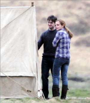 雖然《哈利·波特》第6集今年7月才會(huì)上映,但是結(jié)局篇《哈利·波特7》已經(jīng)開始熱拍。劇組最新拍攝的,是“哈利·波特”丹尼爾與“赫敏”艾瑪在蘇格蘭荒野帳篷外的場(chǎng)景,另一位主角“羅恩”還沒有出現(xiàn)。從片場(chǎng)照片以及小說情節(jié)推斷,丹尼爾與艾瑪拍攝的是他們逃亡在外、風(fēng)餐露宿的場(chǎng)面,“羅恩”魯伯特則因?yàn)槟承┰驎簳r(shí)離開了他們。當(dāng)日的拍攝進(jìn)行得還算順利,想必丹尼爾與艾瑪再次演繹起這兩個(gè)已經(jīng)陪伴了自己近九年的角色,早已駕輕就熟!豆げㄌ7》全名為《哈利·波特與死亡圣器》,這一集電影將一分為二,上部于2010年11月19日上映,下部于2011年7月15日上映。