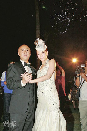 一對新人在酒店筵開18席,現(xiàn)場又大放煙花,歷時5分鐘,在浪漫的環(huán)境下,一對新人忍不住擁抱四目交投,兩度熱吻。結(jié)婚蛋糕共3層,外層的糖衣由粉紅玫瑰和100粒水晶點綴,花了兩日時間制成,價值600元美金,整個婚禮豪花約500萬港元。酒會前一對新人先接受訪問,新郎張衛(wèi)健坦言整個婚禮都十分緊張,還以為自己未讀完誓辭,就跟神父講還未讀完,但神父提他已讀完,余下是新娘子讀,兼且他又擺烏龍幫太太戴錯戒指在右手。張衛(wèi)健說:“以前不信新娘結(jié)婚當(dāng)天是最漂亮的,原來是真的!彼Q婚后他首要學(xué)習(xí)如何白頭到老,他更羨慕一對老人家手拖手行街,希望將來都可以做到。