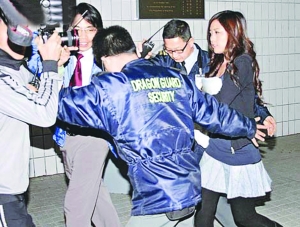 盡管有所準(zhǔn)備,被記者圍攻的張茆仍然有些不知所措。保安人員問張茆要到什么地方,她卻呆呆站在一旁沒有回答,任由記者拍照。保安問她要否先到保安室暫避,她立刻回答:“好!”隨后在4名保安的保護下躲到了校內(nèi)的設(shè)施管理中心,避開傳媒的追訪。