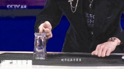 這個魔術(shù),實際上董卿是個托,因為魔術(shù)不涉及職業(yè)道德的問題,只要給觀眾一個驚喜就可以了,董卿在兩個硬幣上簽名,當(dāng)然字體和樣式要相近,私下里簽好的早已經(jīng)給劉謙了。這時,硬幣掉在了桌面上,細(xì)心的觀眾可以明顯的看到硬幣的反光。