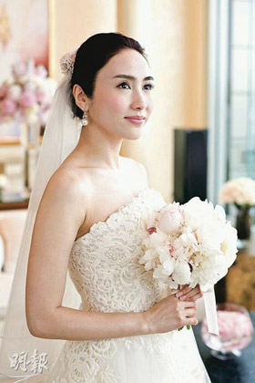 香港《明報》報道,黎姿為前晚及昨晚的喜酒,與丈夫早于大前日已入住酒店的總統(tǒng)套房作準(zhǔn)備,黎姿更先后換上兩套性感婚紗于總統(tǒng)套房內(nèi)拍攝婚紗照,幸福滿瀉的她明顯發(fā)福不少,未知是否傳聞中懷有身孕?她昨日發(fā)放5張婚紗照,馬廷強(qiáng)低調(diào)未有一同亮相。相中見到黎姿是名副其實的“珠光寶氣”,戴上名貴珍珠耳環(huán)、頸鏈,最搶眼莫過于左手無名指的巨型鉆戒,流露幸福少奶奶甜蜜感覺。