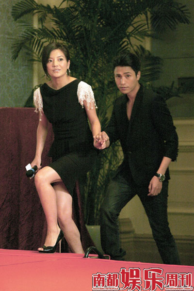 而陳坤也不讓搶鏡的趙薇專美于前,他豪氣派發(fā)數(shù)十封紅包給現(xiàn)場記者當作年后開工的開門利是,令到現(xiàn)場一片歡騰。由于開機當天正臨近情人節(jié),記者紛紛要求趙薇和陳坤這對銀幕情侶攜手擺拍幾張親密愛人的pose,二人也十分配合,發(fā)布會上也很是投入地“演出”情侶間的拌嘴畫面,陳坤先爆自己不喜歡趙薇這一類型的,因為“她太男人氣了”,趙薇則回嘴自己“其實一直很有女人味,都是被陳坤亂造謠把名聲搞壞了!庇杏浾哐垡娙绱藲夥,便趁熱打鐵地詢問兩人是否有發(fā)展可能,沒料到氣氛一下子降至冰點,向來感情生活神秘的陳坤臉色突變,干脆別過頭去,不予回答,最后還是趙薇化解了尷尬場面,她有些嚴肅地說:“我倆各自都挺多人追的,就還是別在一起給其他人一些機會吧!